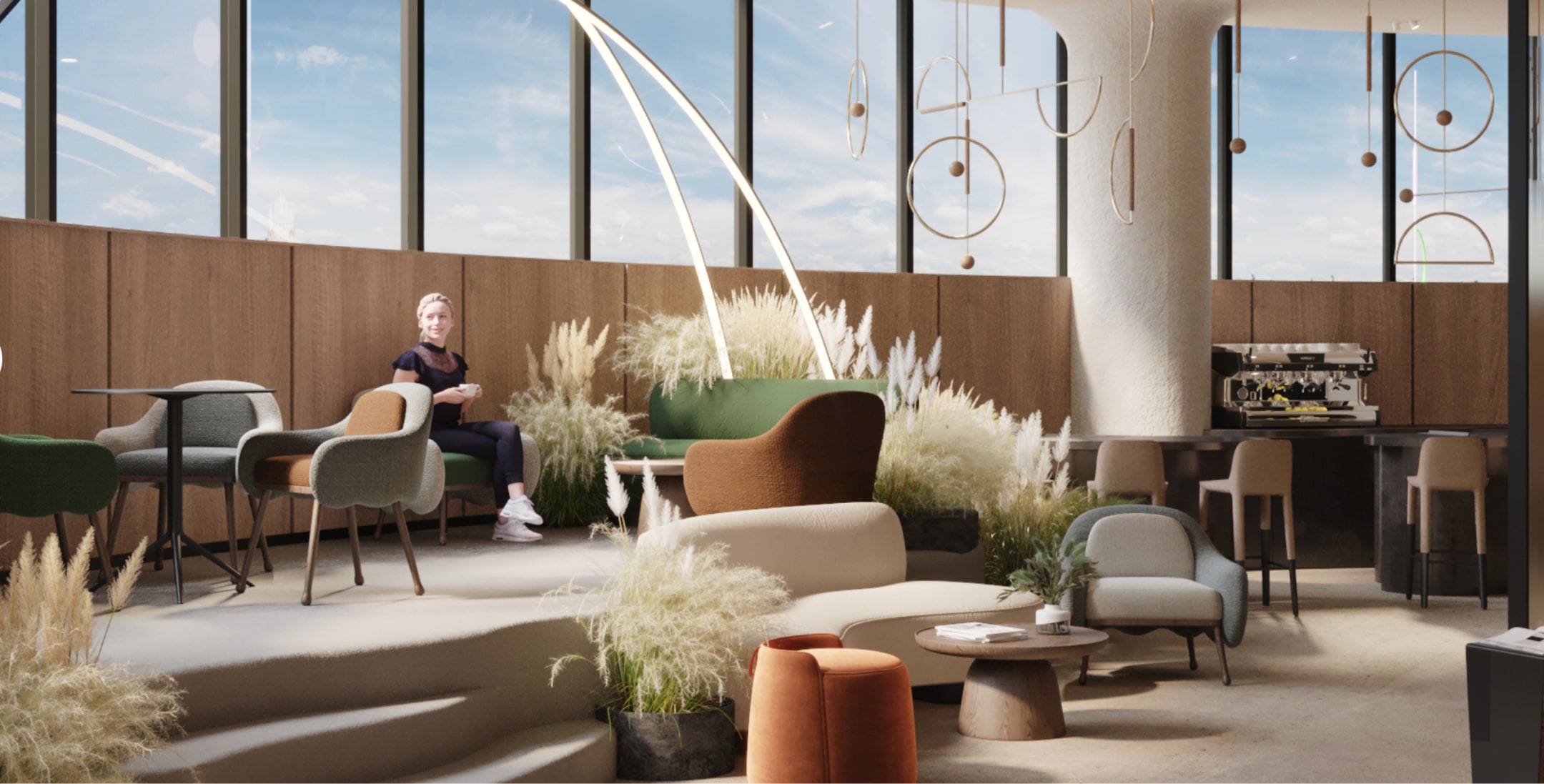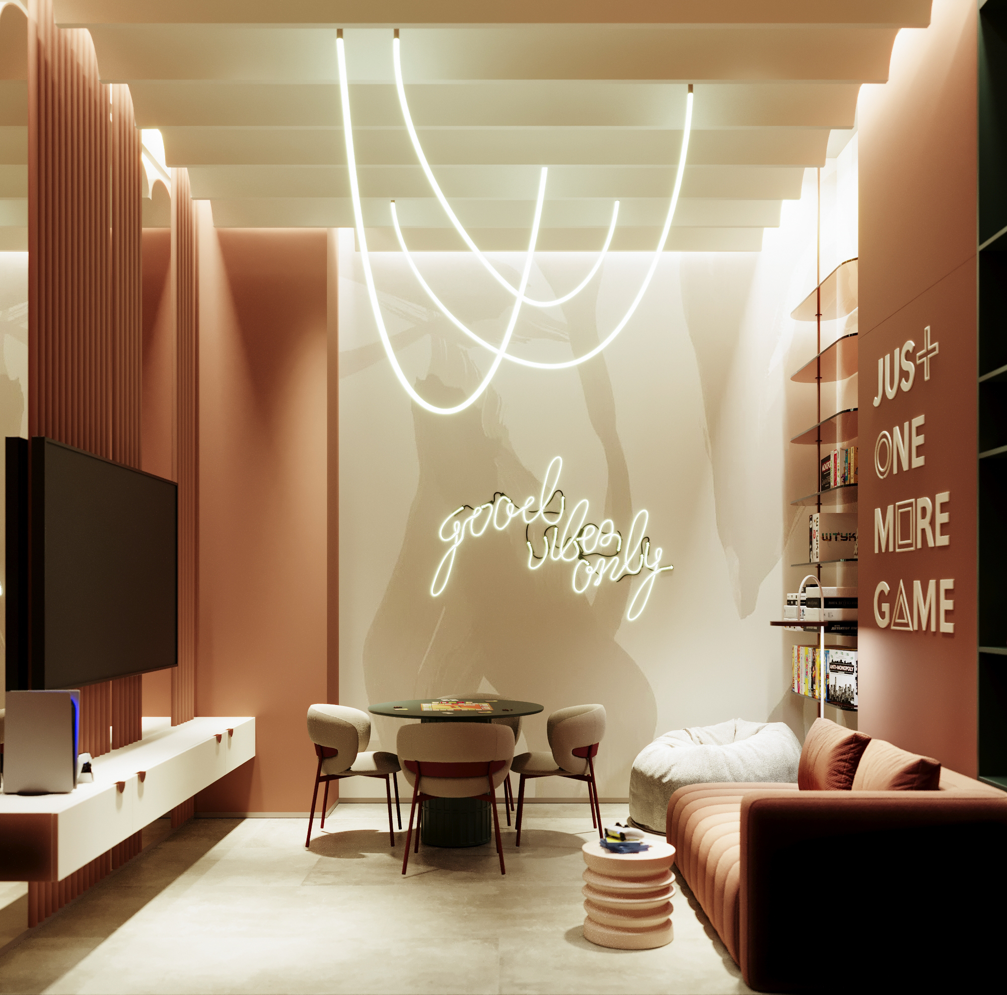 В квартале создана клубная гостиная площадью 315 кв. м — особое пространство для общения жителей по фирменному стандарту FRIEND’S LAB от Sminex.