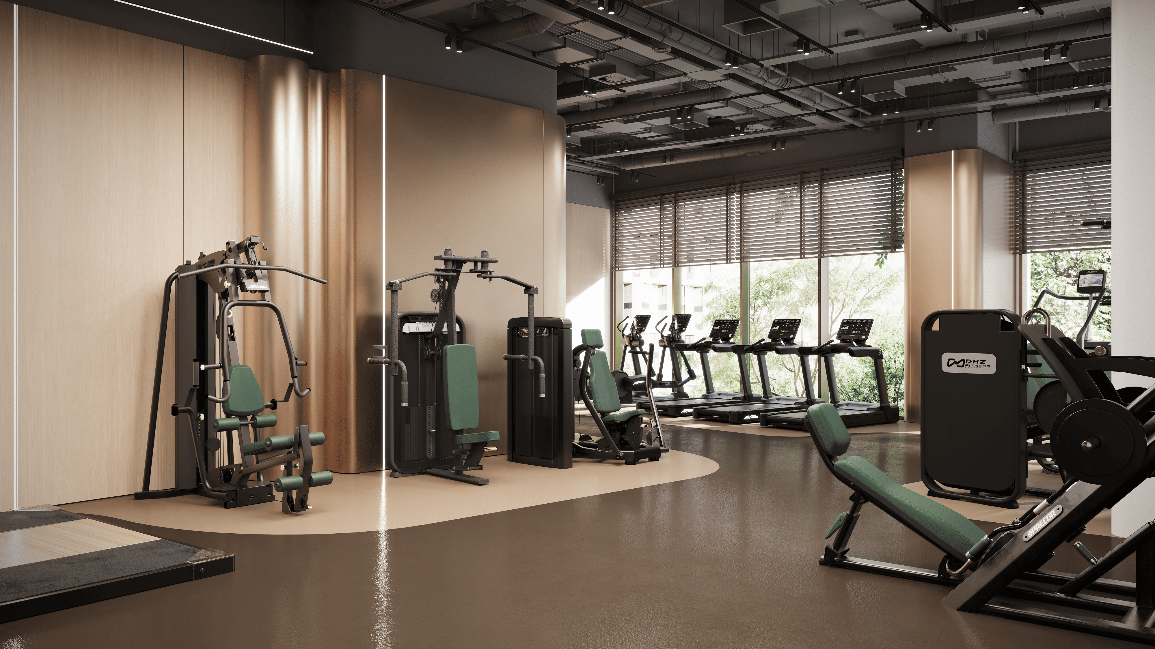 Фитнес-зал (510 кв. м) с раздевалками и душевыми.