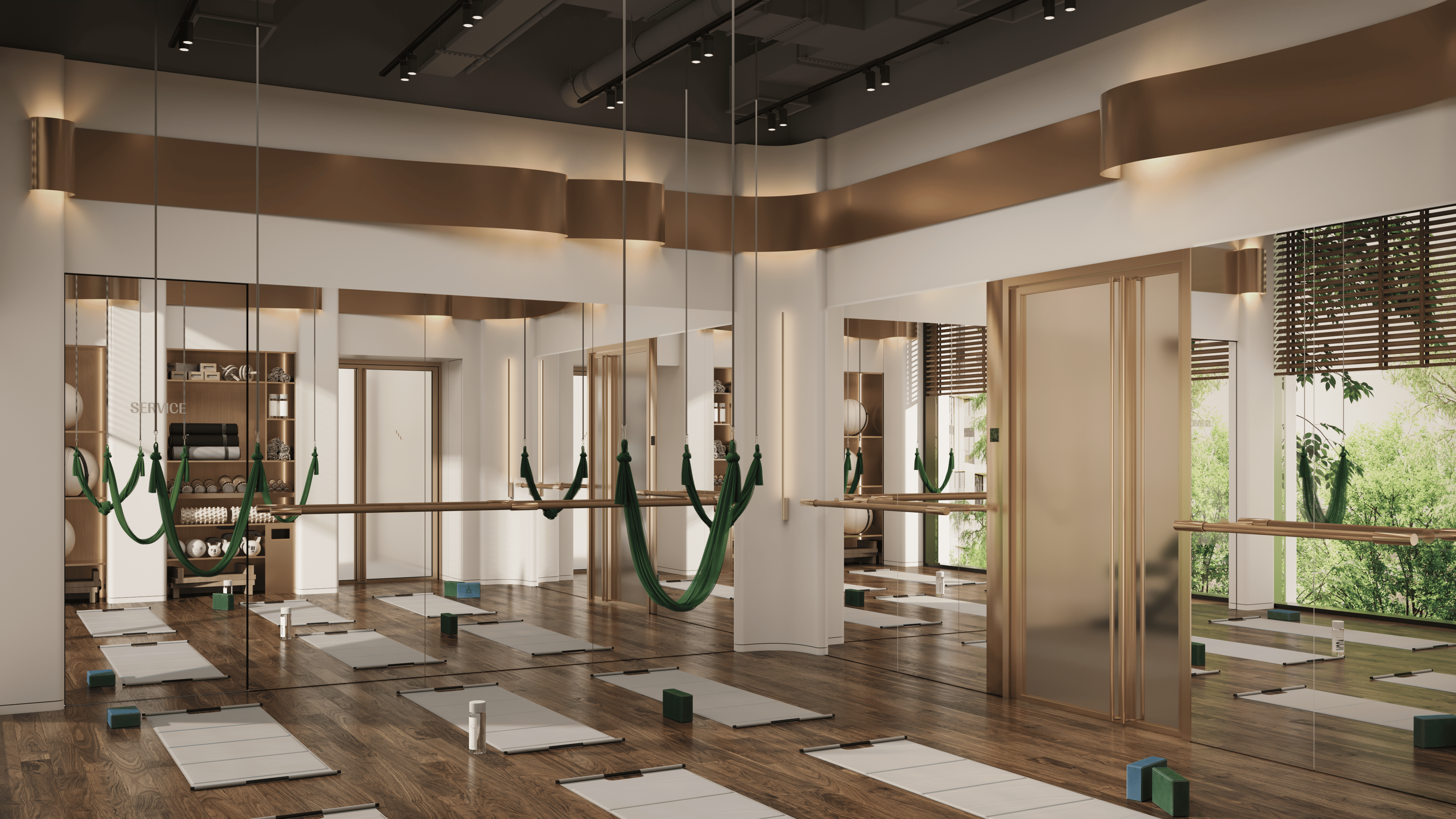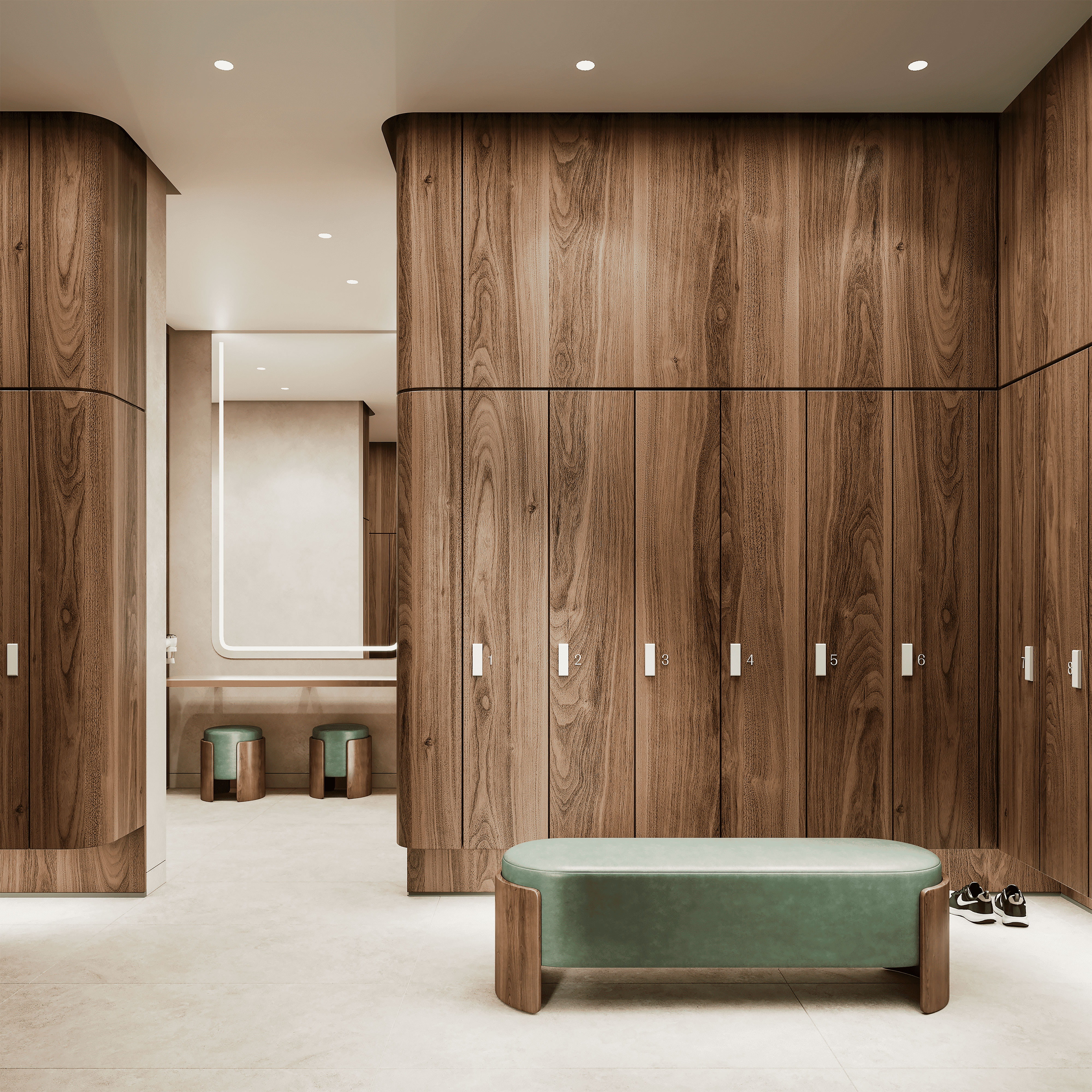 Фитнес-зал (510 кв. м) с раздевалками и душевыми.